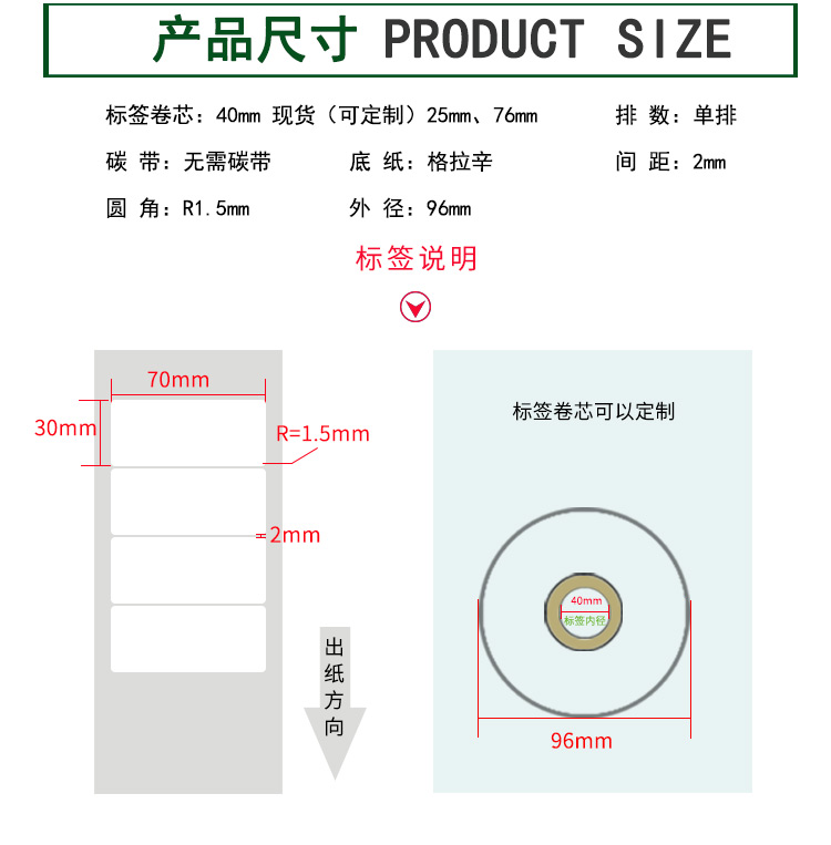 【標簽間距】2mm、圓角R=1MM、卷芯寬度:40mm