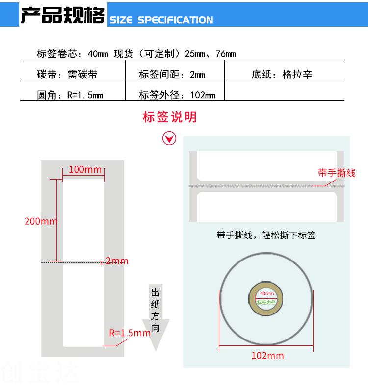 適合不同氣候地區使用,適用電子電器、五金塑膠、服裝、醫藥、日化、食品、商超、倉儲物流、資產管理、條碼標識、外箱貼紙等長期保存的產品標簽及外箱標簽同時也可以用于長時間保存(配合碳帶)的亞馬遜、郵政國際、物流標簽、郵政包裹、EBAY、速賣通、遞四方、出口EUB標簽、出口電商等標簽